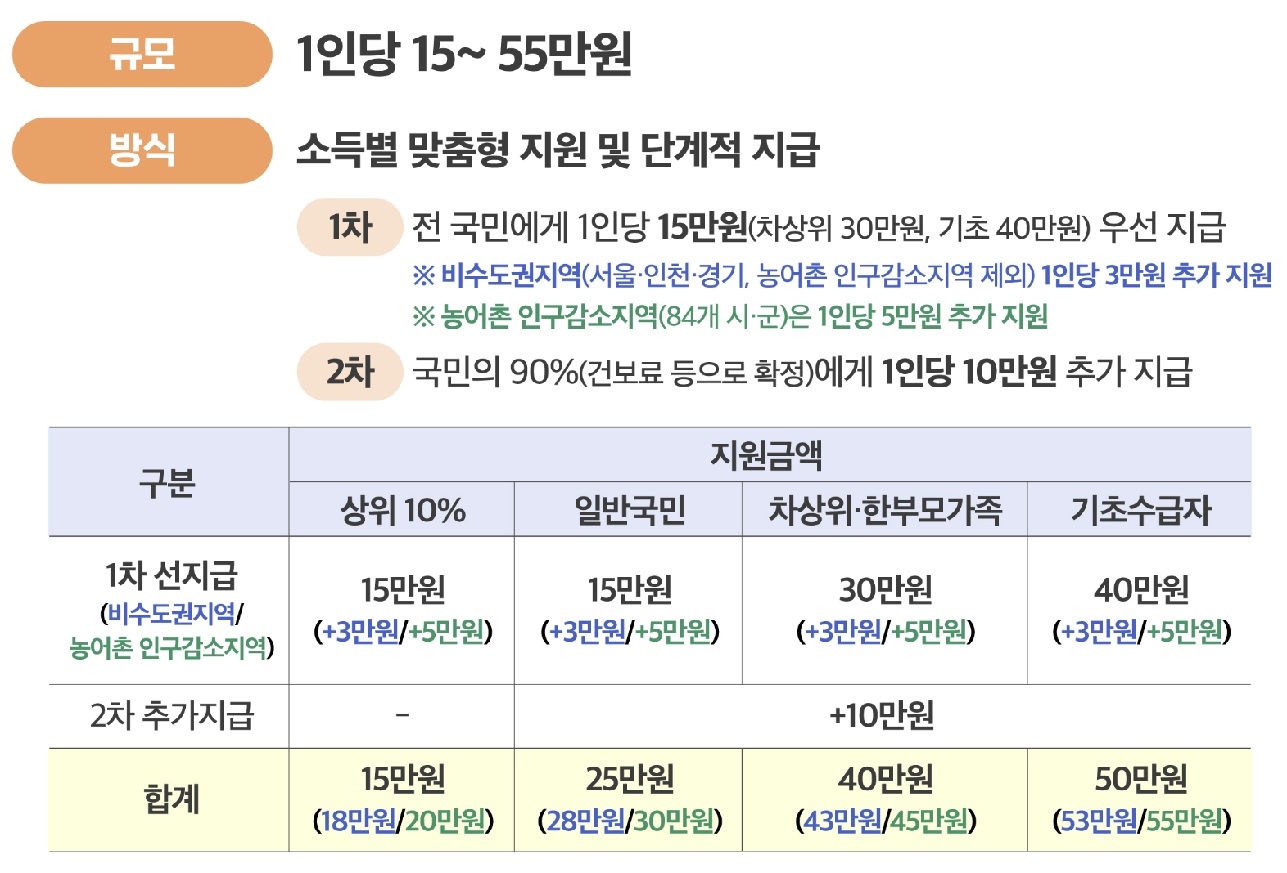 예를 들어, 4인 가족이라면 평균 100만원 상당의 소비쿠폰을 받게 되는 셈이에요.